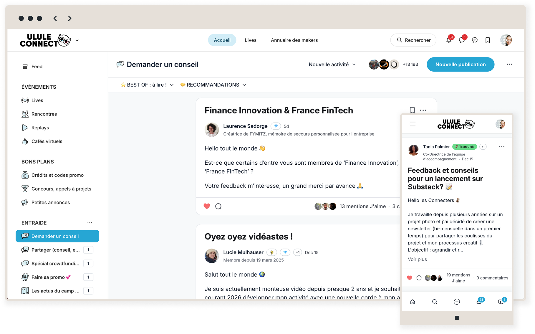 Et surtout, vous ne restez jamais seul·e grâce à la communauté Ulule Connect : vous y trouvez des conseils de membres et d’experts.